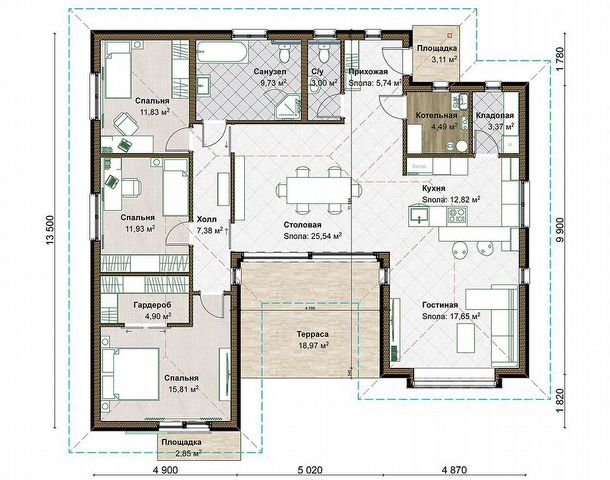 Каркаснобрусовой на канадской монолитной плите. Холодная (Северная сторона) двойное утепление.