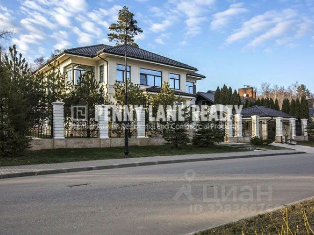Описание внутренней отделки: отделка в доме выполнена в стиле "современная классика" из дорогостоящих материалов, преимущественно из Италии. Стены в жилых помещениях - обои (бумажные и шелкография) с элементами из гипсовой лепнины (модули, филенки, колоны, полуколонны и карнизы), в санузлах - плитка с элементами мозаики производства Италия, в сауне - липа. На полу керамогранит Serenissima (Италия) с водяным подогревом, массив доски Палисандр и инженерная доска Американский орех, на улице (террасы и ступени) - натуральный гранит термической обработки (противоскользящие). Широкая лестница на ж/б основании монолитная. Ступени, подступени и поручни выполнены на заказ из массива дуба. Балясины - металлически художественное литье под бронзу. Многоуровневые ГКЛ потолки с элементами из гипса (карнизы, кессоны, модули), имеет различную подсветку. Установлена сантехника Villeroy & Boch, Duravit, Hansgrohe (Италия и Германия), душевые Huppe из дизайнерских коллекций. Разводка в котельной медью, установлены радиаторы JAGA (Бельгия). Электрика - Gira (Германия). Двери и резные порталы выполнены в классическом стиле из массива дуба по индивидуальному заказу высотой 2,32 м. Подоконники также из массива дуба. Камин - топка чугунная Schmid (Германия), облицовка натуральный резной мрамор..