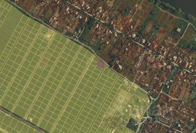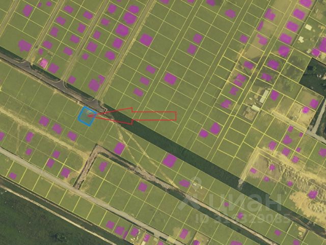 Небольшой выровненный участок прямоугольной формы для постройки жилого или дачного дома. Подьезд есть. На участке растут несколько деревьев.