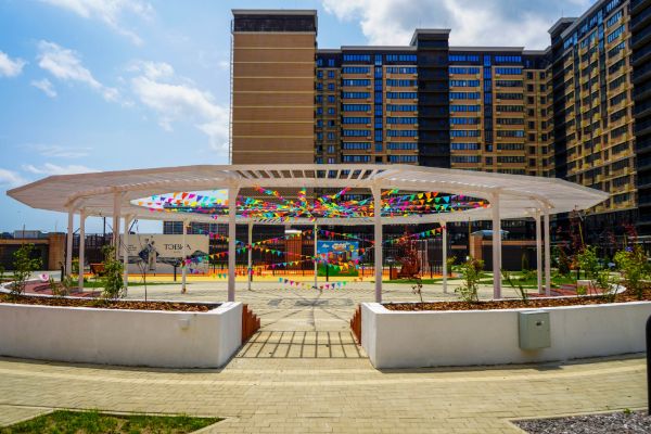 На уютной придомовой территории расположены детские и спортивные площадки, удобные подземный и наземный паркинги. Транспортные развязки позволяют свободно перемещаться по территории жилого комплекса, а развитая инфраструктура - легко и быстро решить многие вопросы вблизи от дома