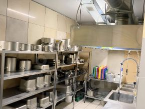 Общая площадь 350 кв.м: 300 кв.м - действующая оборудованная кухня, 4 мокрых точки. с/у, душевая, раздевалка для персонала. Видеонаблюдение. Жироуловители, сливные трапы ,холодильники, камера шоковой заморозки, плиты ,и.т.д 50 кв.м - складские и подсобные помещения. Выделенная электрическая мощность 150 КВт. Прямая долгосрочная аренда.