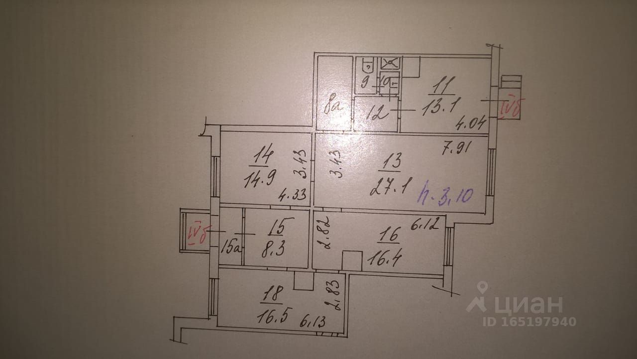 3 комнаты и зал 27м2.