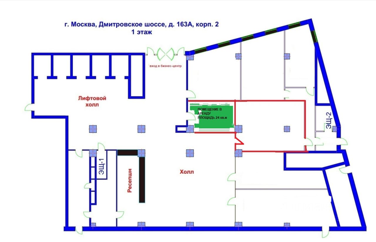 Вход в помещение через входную группу бизнес-центра. Бизнес-центр работает круглосуточно. В арендную ставку включены эксплуатационные расходы и охрана. Арендатор отдельно оплачивает электроэнергию и водоснабжение по показаниям счетчиков.