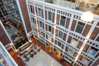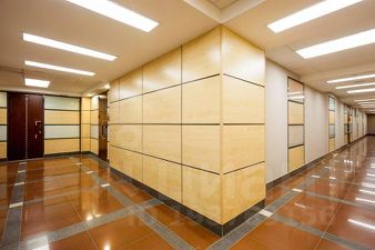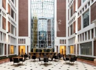 Два панорамных окна в атриум. Офис рационально тонирован, установлены стеклянные перегородки, которые делят помещение на: open space, изолированный кабинет и помещение под кухню. Имеется мокрая точка. Стандартная офисная