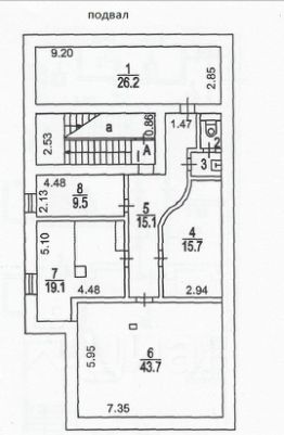 В планировке здания: холлы, кабинеты, зал для переговоров, комнаты для охраны, оборудованные подвальные помещения.