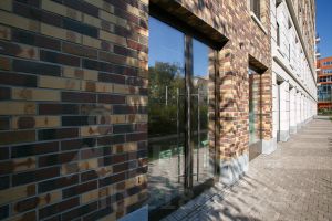 Концепция комплекса разработана архитектурным бюро с мировым именем David Walker Architects Ltd в стиле комфортного минимализма. Два нижних этажа каждого здания, оформленные галереями с колоннами, словно поднимают невысокие здания вверх. В отделке фасадов использован клинкерный кирпич трех оттенков с эффектом меланжа: теплый бежевый, шоколадный, глубокий красный. А французские окна с тонкими решётками балконов приносят легкость и элегантность в простоту кирпичной кладки фасадов.