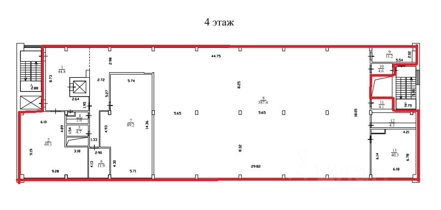 Арендуемая площадь с учетом коридорного коэффициента (12%) 978,7 кв.м. на 4 этаже.