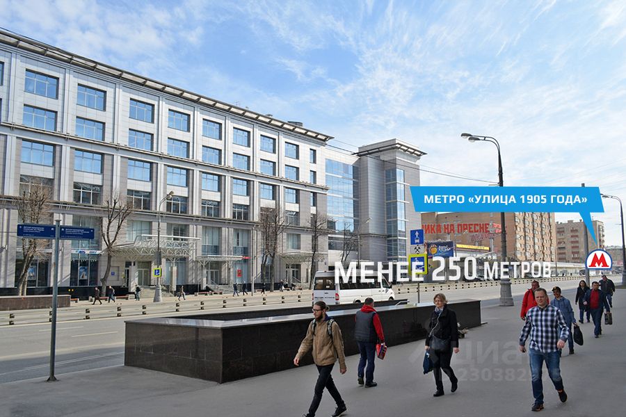 Расположение - Москва, ЦАО, район Пресненский. 2-3 минуты пешком от станции метро Улица 1905 года. На 1-й линии Звенигородского шоссе, направление на Новую Ригу. Бизнес центр расположен в сложившемся деловом районе. На 1 этаже Бизнес Центра располагаются отделения ВТБ 24 и Альфа банк, ресторан True Cost