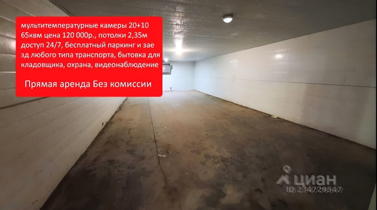 СКЛАД ХОЛОДИЛЬНИК от 65 кв. м.. Температурный режим от -20 до +10 градусов. Холодильные