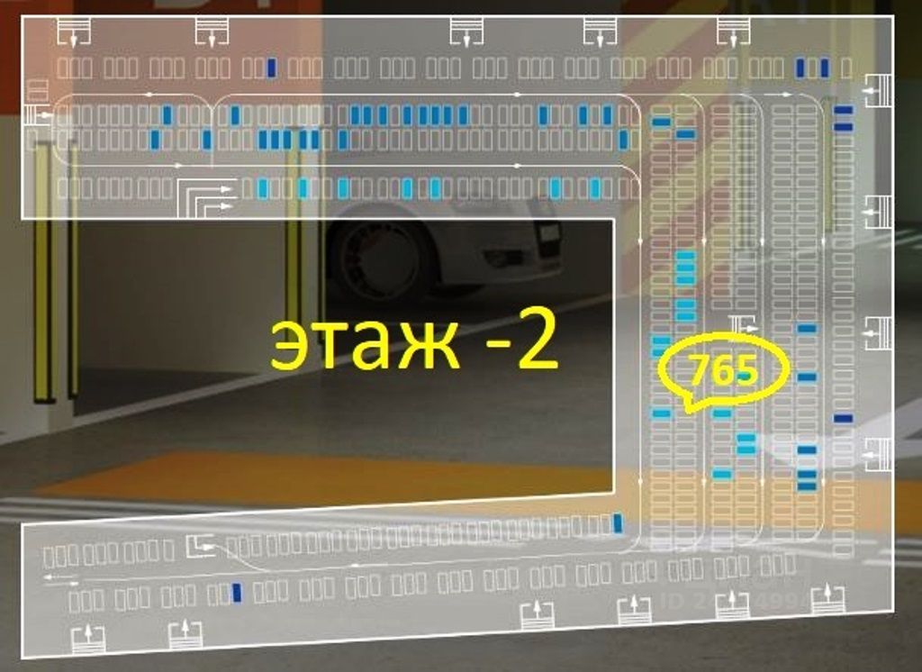 Машиноместо 2,7х5,5м находится на -2 уровне и равноудалено от подъездов 3, 4, 5, 6, 7, 8, 9, 10, 11, 12 и 13