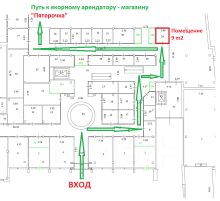 Помещение находится на 1 этаже на единственном пути к якорному арендатору - супермаркету "Пятёрочка".