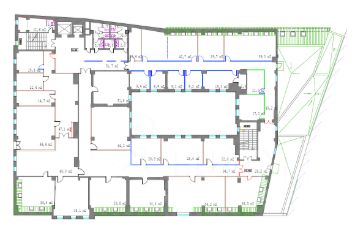 - 5 этаж - 435,6 кв.м. Кабинетная планировка. 3 с/у, кухня, серверная. Рассадка до 45 сотрудников. С НДС.