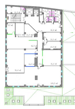 - 1 этаж - 285,6 кв.м. 5 кабинетов, 2 с/у, кухня, серверная. Освобождение по запросу. УСНО.