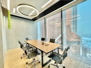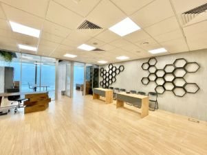 Видовой представительский офис с кабинетной планировкой, миникухней и дизайнерским ремонтом