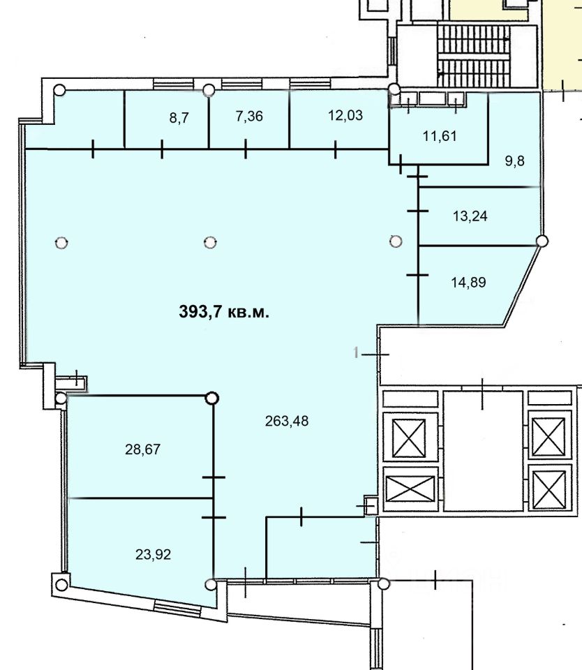 СОБСТВЕННИК Предлагает в аренду офисный блок общей площадью 393.7 квадратных метров на девятом этаже, разделенный офисными перегородками на функциональные блоки.