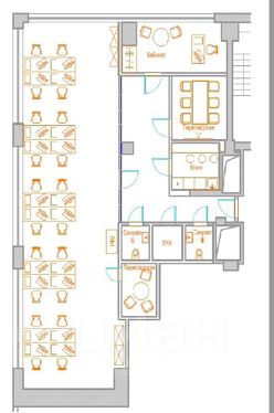 Ресепшн . 4 op-sp. Зона руководства. кабинеты. Лаунж-переговорные. Кухня. 6 современных санузлов. Гардеробные.
