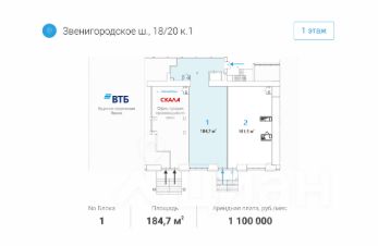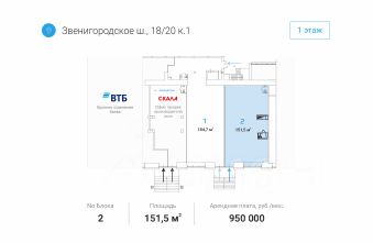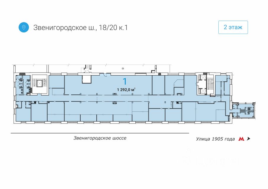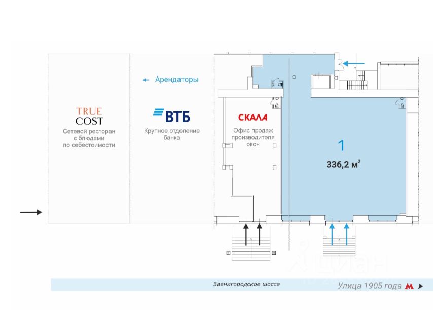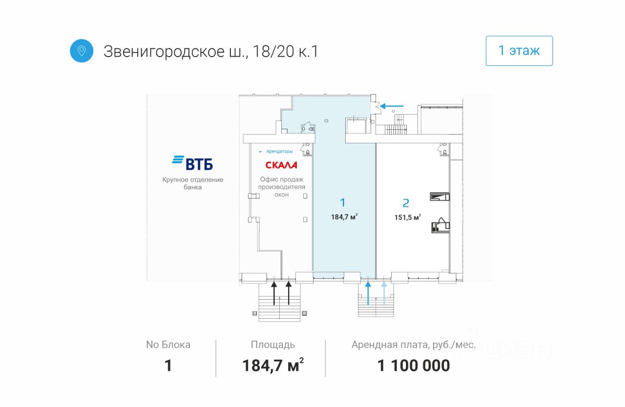 Предлагается в аренду помещение на Звенигородском шоссе, ЦАО г.Москвы. Объект расположен на первом этаже, антресоли и в подвале, на первой линии. До станции метро "Улица 1905 года" - 2-3 минуты пешком. Интенсивные автомобильный и пешеходный потоки. Бизнес центр класса В+ "Звенигородский" расположен в деловом и жилом районе. Расстояние до основных магистралей: ул. Красная Пресня - 400 м, ул.1905 года - 250 м, Садовое кольцо - 1,8 км, ТТК - 1,1 км.