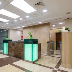 Офис с новой мебелью, уборкой, охраной, кухней на этаже.