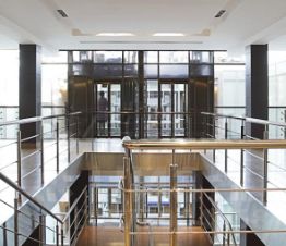 В здании организован просторный светлый атриум, стильные интерьеры.