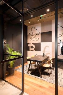 -в рамках одноименного многофункционального комплекса на первых этажах есть полноценная инфраструктура кафе, ресторанов, салонов красоты, супермаркетов (в том числе Мираторг и Вкусвилл), дом быта и т.д.;