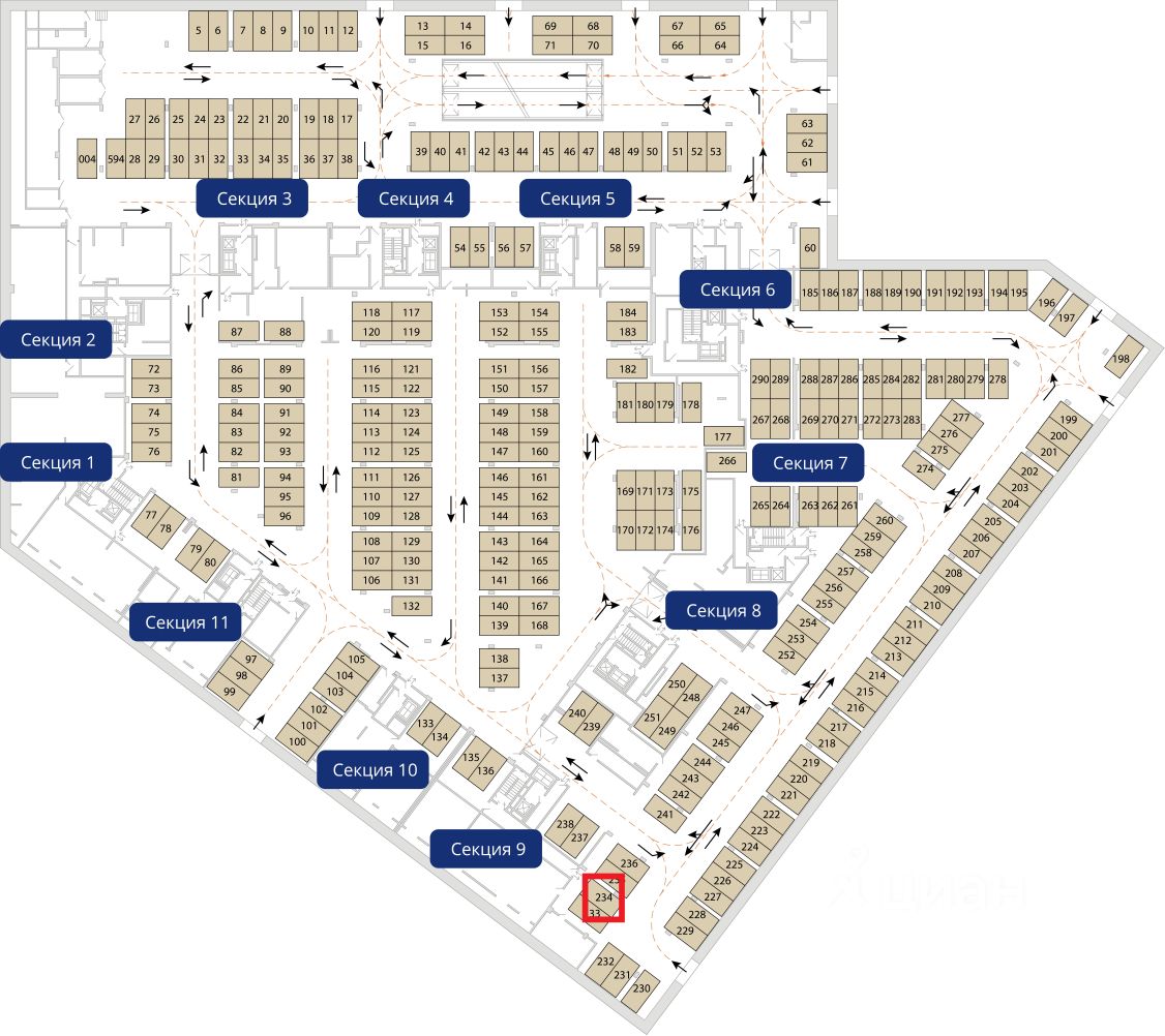 234 на -1 этаже, рядом 9 и 10 секция 3 корпуса и недалеко переход в 5 корпус(1 и 2 секция)