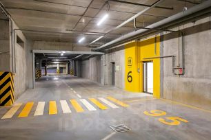 Машиноместо в ЖК Нахимов, у стены, удобное, есть возможно хранить колеса. Или установить шкаф. Мотоцикл или велосипед на свободное пространство за машиноместом у стены.
