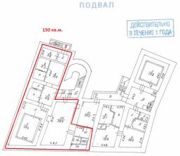 Подвал - 150 кв.м.(банковское помещение), депозитарий, кассы, отдельный вход со двора, смешанная планировка.