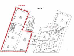 1 этаж - 140 кв.м.(офис), три кабинета + сан. узел и кухня, свободный вход.
