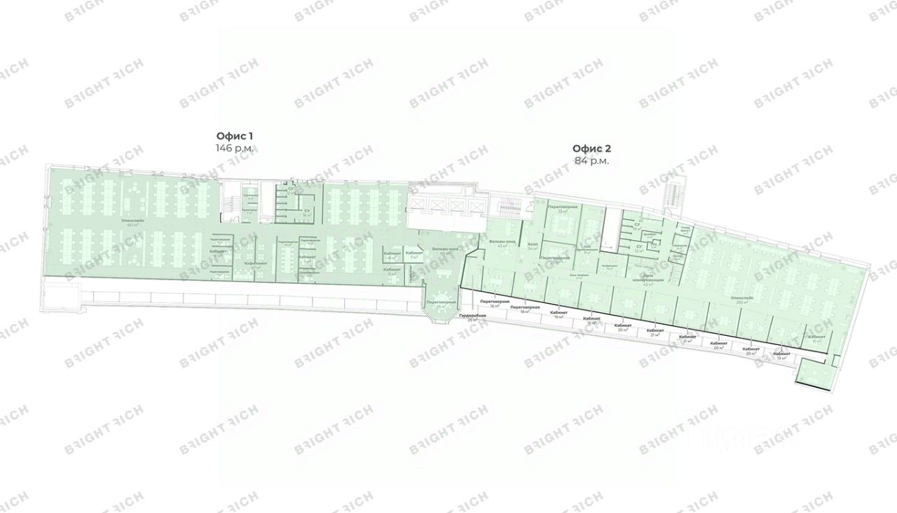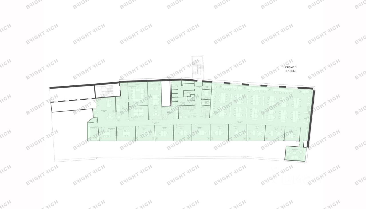 • планировка смешанная (open space, кабинеты, мини-кухня, лаундж-зона, переговорные, с/у, зона ресепшен)