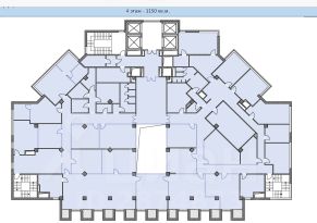 4-й этаж - 1150 кв.м., качественная отделка, кабинетная планировка.