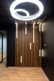 Офисное помещение передается с высококачественной отделкой, полы покрыты ламинатом (в санузле пол и стены покрыты плиткой), освещение, кондиционирование, система электроснабжения 2-й категории надежности с системой резервного электропитания, пожарная сигнализация.