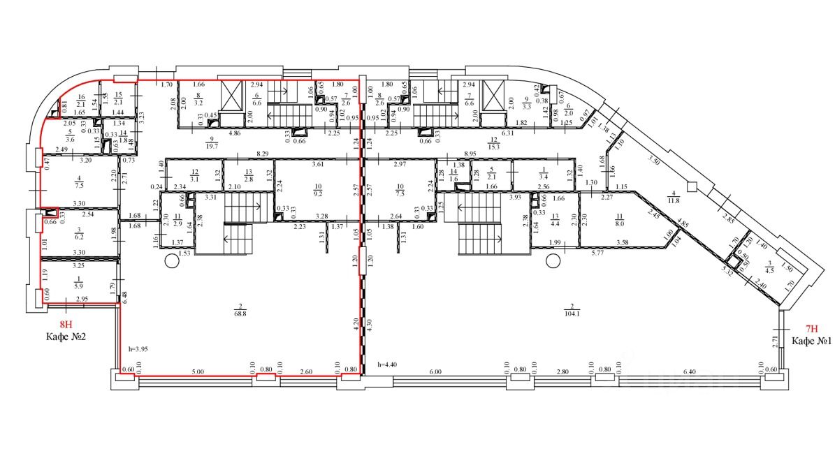 Площадь помещения - 668,2 кв.м (1 этаж - 326,6 кв.м; 2 этаж - 166,1 кв.м; эксплуатируемая кровля для размещения летней веранды 180,2 кв.м). Высота потолков: 1 этаж - 4,5 м, 2 этаж -4 м. Электрическая мощность от 60 кВт по запросу.