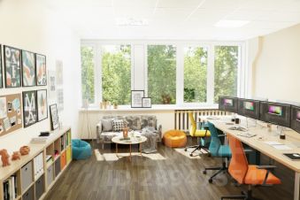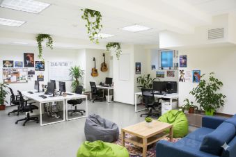 - открывающиеся для проветривания окна, естественная освещенность рабочих мест, много воздуха и света,