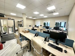 Отделка выполнена из качественных материалов (на полу уложен ламинат, стены покрашены). В офисе установлены системы центрального кондиционирования и приточно-вытяжной вентиляции, центральное отопление, пожарная сигнализация, видеонаблюдение, офис оборудован системой охраны. Отсутствует пропускная система, доступ 24/7, подходит под любой вид деятельности. Бизнес-центр имеет богатую инфраструктуру: столовая, рестораны, кафе, магазины и салоны красоты. Также имеется паркинг, в том числе гостевой.