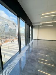 Сдам в аренду офисное помещение с отделкой в Ostankino business park. Свободная планировка, панорамное остекление, вид во внутренний двор. Выполнен качественный ремонт, пол итальянская плитка 120Х60, система отопления установлен коллектор с возможностью дистанционного регулирования температуры в офисе, радиаторы заменены на встроенные в пол конвекторы, на окнах установлены жалюзи. Установлены два фанкойла Electrolux, система приточно-вытяжной вентиляции, система доступа в офис FACE ID с электронным замком и видеодомофоном, розетки Schneider Electric, автоматы Legrand, слаботочный щит. В полу уложены дополнительные коммуникации по электрике и слаботочным системам, поэтому есть возможность установки в полу электрических и интернет розеток практически в любом требуемом месте.