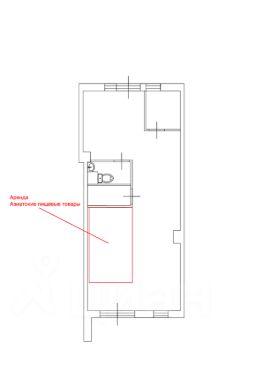 Сейчас находится арендатор азиатской пищевой продукции, может остаться на выделенной площади - выделено красным на плане.