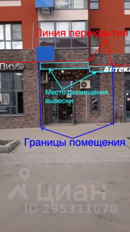 Есть вытяжка, приток можно установить в решетках на фасаде. Внешний блок кондиционера также допускается к установке на фасаде. Рекламная вывеска монтируется на фасаде.