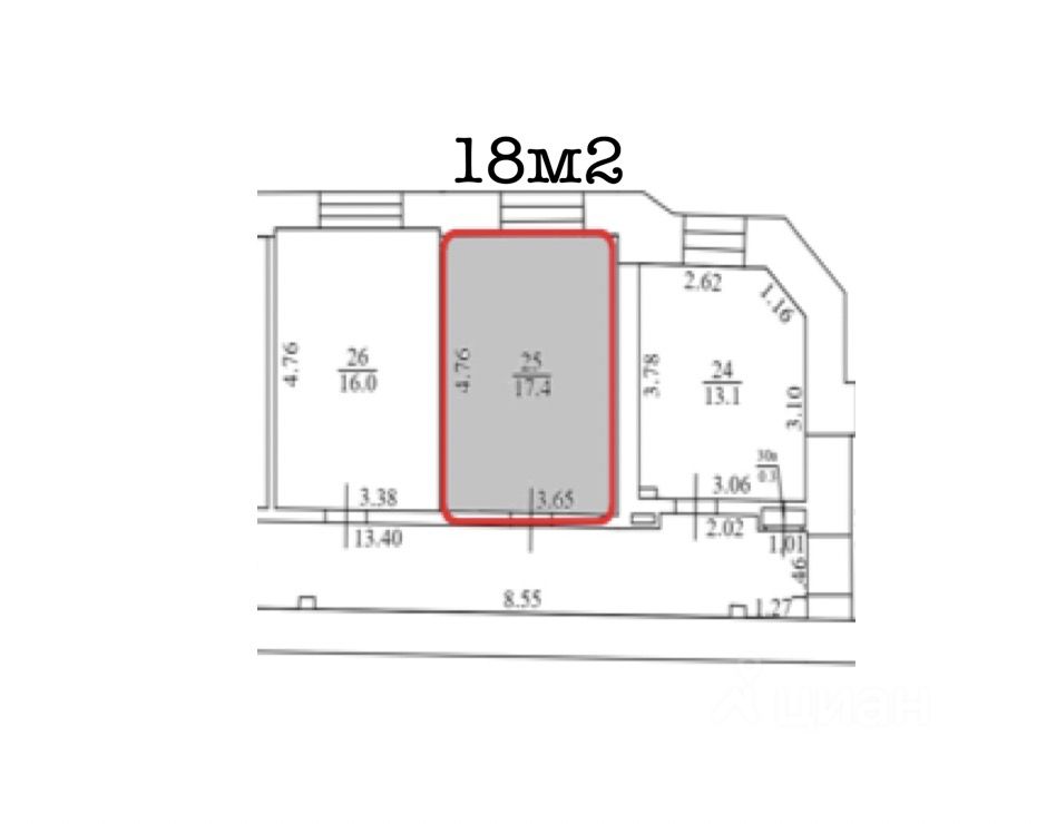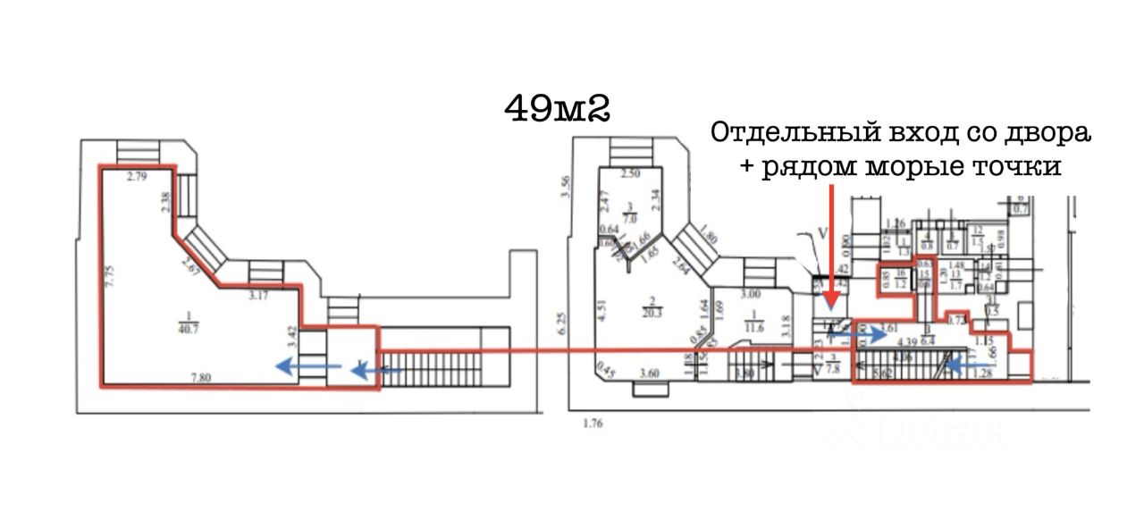 49м2 - 1 комната, 3 окна, с кондиционером, отдельный вход со двора, рядом мокрые точки, 1й этаж, 327000р,