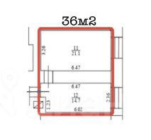 36м2 - 2 комнаты с окнами, с кондиционером, 2й этаж, 223000р,
