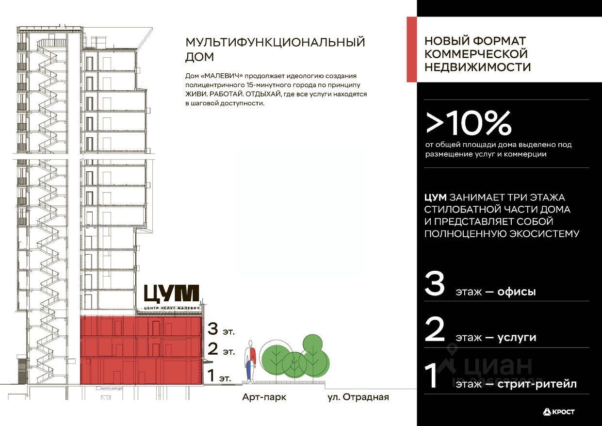 Аренда торгового помещения площадью 38 кв.м. от застройщика в уникальном проекте ЦУМ (Центр Услуг Малевич) - широкоформатный и мультифункциональный кластер услуг, интегрированный в жилое пространство Дома "МАЛЕВИЧ", который находится в сердце густонаселенного района Отрадное.