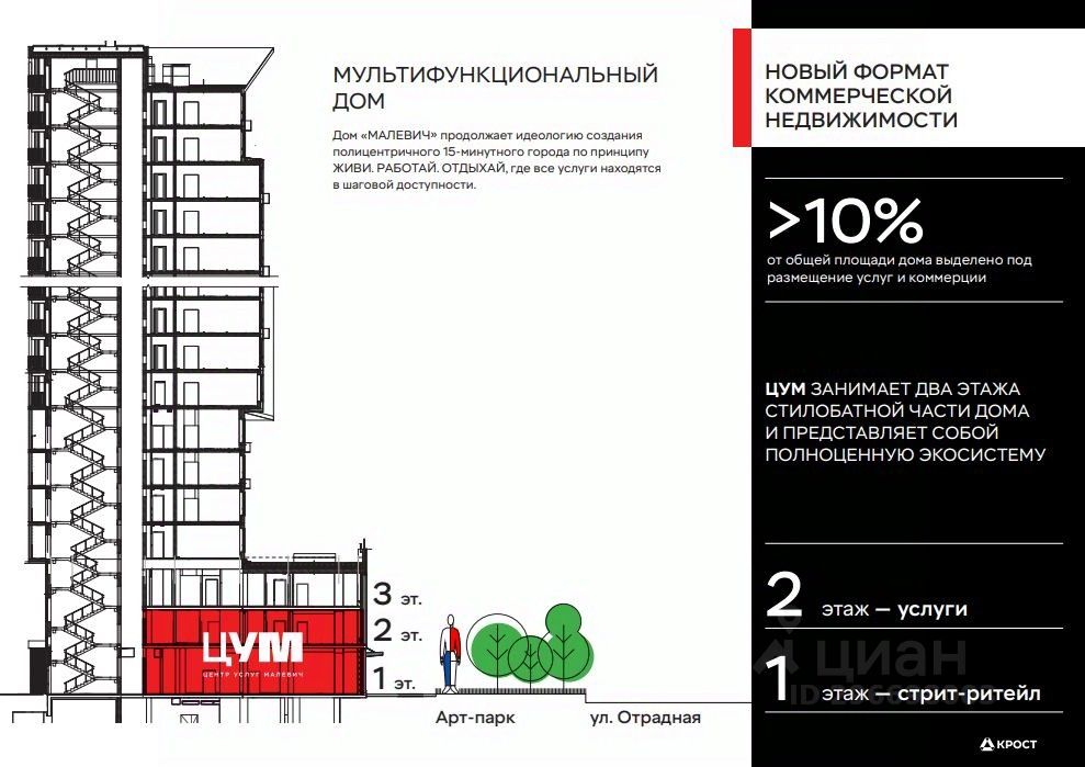 Аренда торгового помещения площадью 20,9 кв.м. от застройщика в уникальном проекте ЦУМ (Центр Услуг Малевич) - широкоформатный и мультифункциональный кластер услуг, интегрированный в жилое пространство Дома "МАЛЕВИЧ", который находится в сердце густонаселенного района Отрадное.