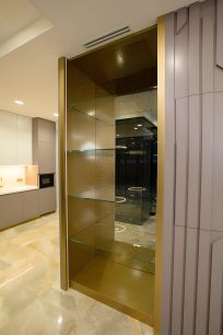 Интерьер выполнен на уровне частного кабинета владельца крупного бизнеса: натуральные материалы, латунь, камень, ручная декоративная отделка, выверенная световая архитектура, премиальная встроенная инженерия.