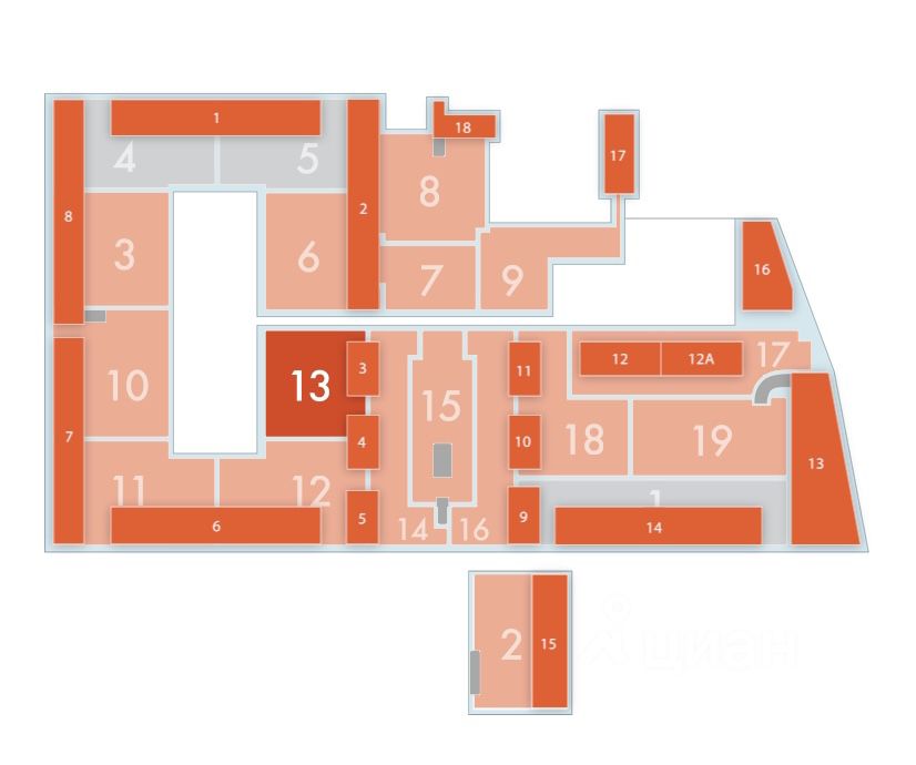 Посередине 12,8 м2 -14 000 р. и у столба 14.4 м2 - 18 000 р. в 13-м светлом и сухом отсеке.