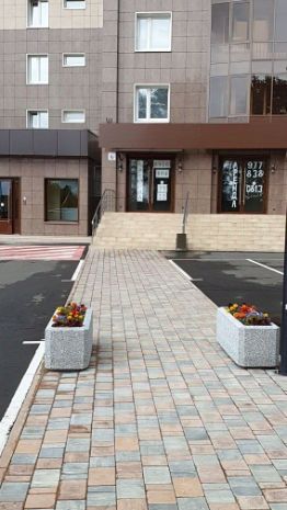Первое помещение от угла, дорожка от тротуара идет непосредственно в помещение.