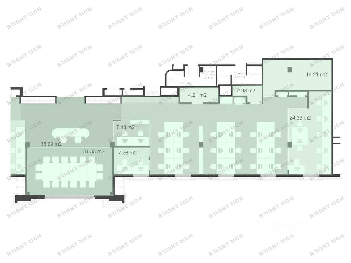 - Планировка: open space, кабинеты, кухни, с/у, серверные