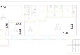 1эт. здание 227м2 с цоколем(с окнами) на 2й линии домов. Цоколь 101,1м2, 1 этаж 126,5м2. Планировка смешанная. Типовой ремонт. Кабинеты 33, 38, 6 м2, зал более 100м2, склад, кухня, 2 туалета. Потолки 3-3,3м