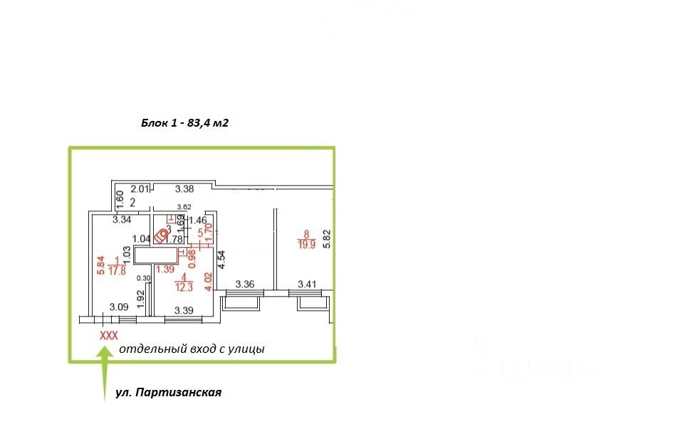 Помещение расположено на первой линии окна и входы выходят на оживленную улицу Партизанская.