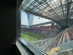 Панорамное остекление здания обеспечивает хорошее естественное освещение и прекрасные виды на футбольное поле внутри стадиона.