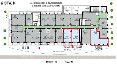 В здании система приточно-вытяжной вентиляции, фанкойлы, пожарная сигнализация, интернет, телефония, видеонаблюдение, круглосуточный доступ, охрана, лифты (пассажирский и грузовой), все коммуникации. Кафе на 1м этаже.