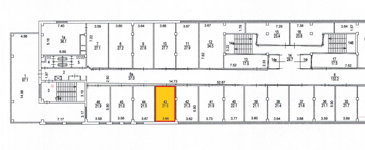 Номер помещения на прилагаемом поэтажном плане (по кадастровому учету) этаж 3, пом.4, комн. 43.